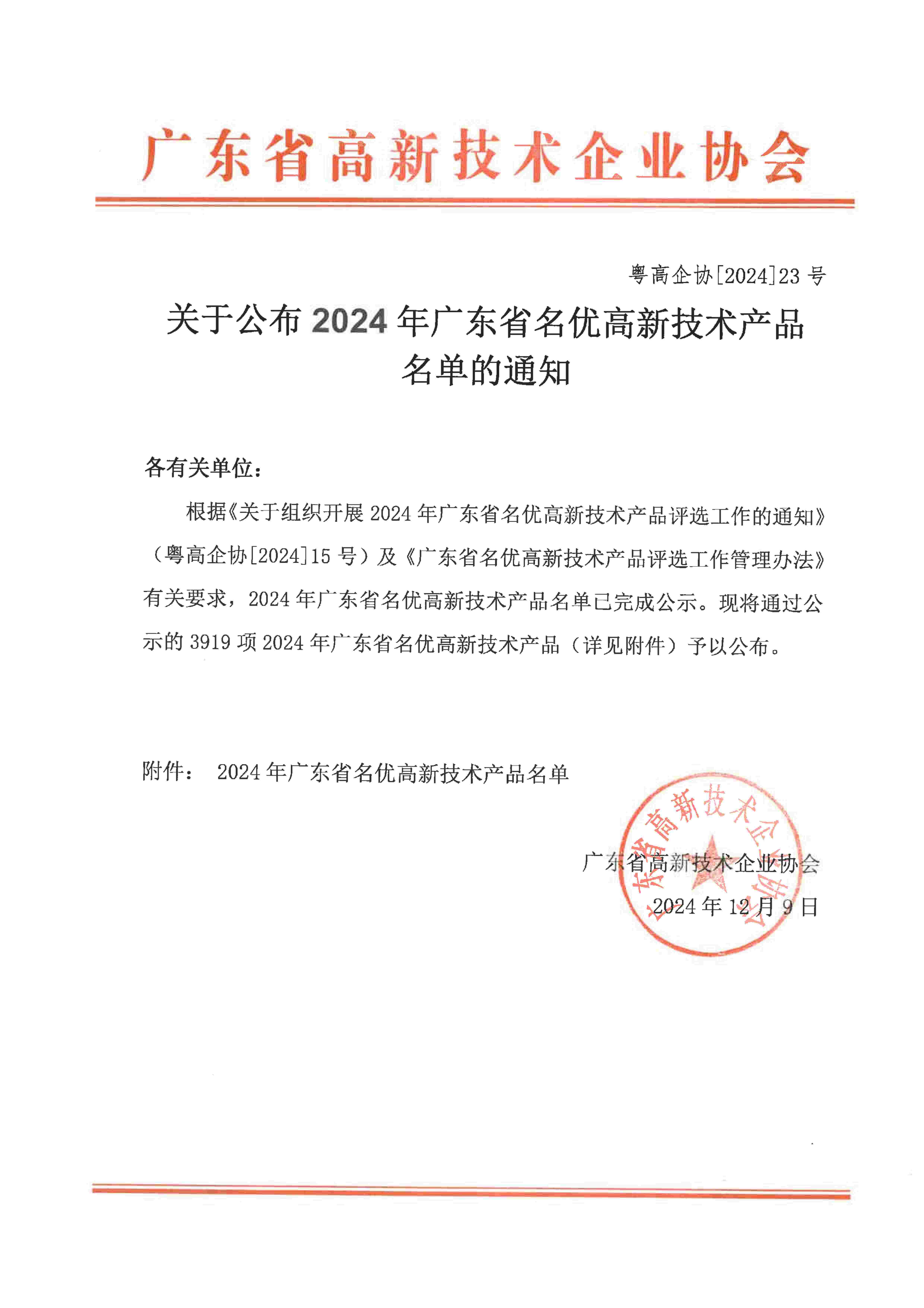 根据《关于组织开展2024年广东省名优高新技术产品评选工作的通知》(粤高企协[2024]15号)及《广东省名优高新技术产品评选工作管理办法》有关要求,经广东省高新技术企业协会组织评选,我司变电二次继保自动化设备一体化全自动验收装置产品被评为“广东省名优高新技术产品”。